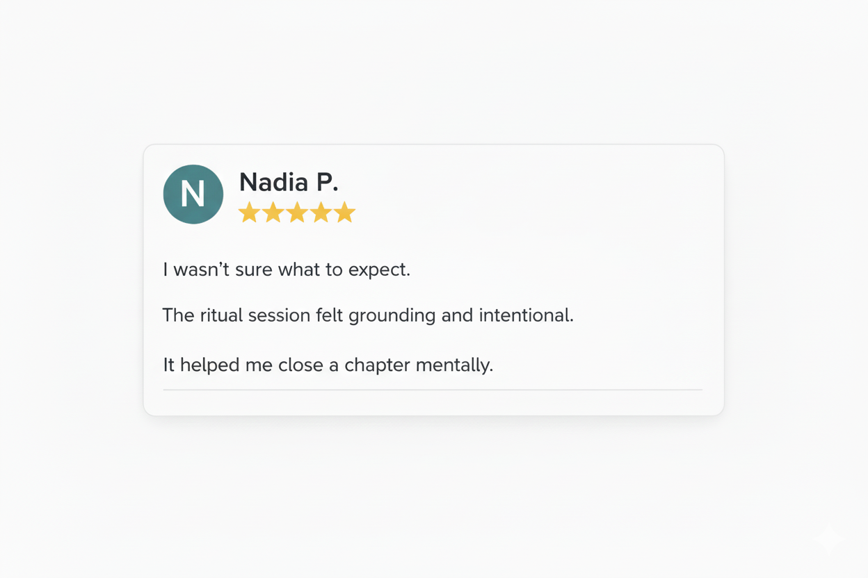 Rituals are used to mark transitions, reinforce intent, and support internal realignment. session focuses on the intentional design of rituals as structured interventions. Rather than symbolic performance, the emphasis is on clarity, structure, and timing. Each engagement begins with a defined objective and contextual assessment. Rituals may support closure, initiation, decision readiness, or emotional recalibration. The process is deliberate, focused, and tailored to individual circumstances. Guidance is provided to ensure correct execution and integration.